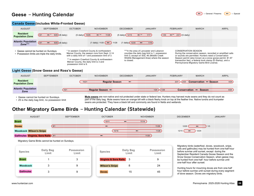 This Hunting Atlas is an ultimate guide to hunting in the state of Pennsylvania in 2025-2026 hunting season for all species: deer, bear, turkey, ducks, geese, small game, furbearers and more. It contains: