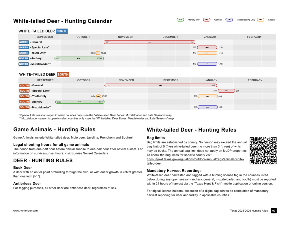- and other information that Texas hunters need for the hunting season of September 1, 2025 - August 31, 2026.
